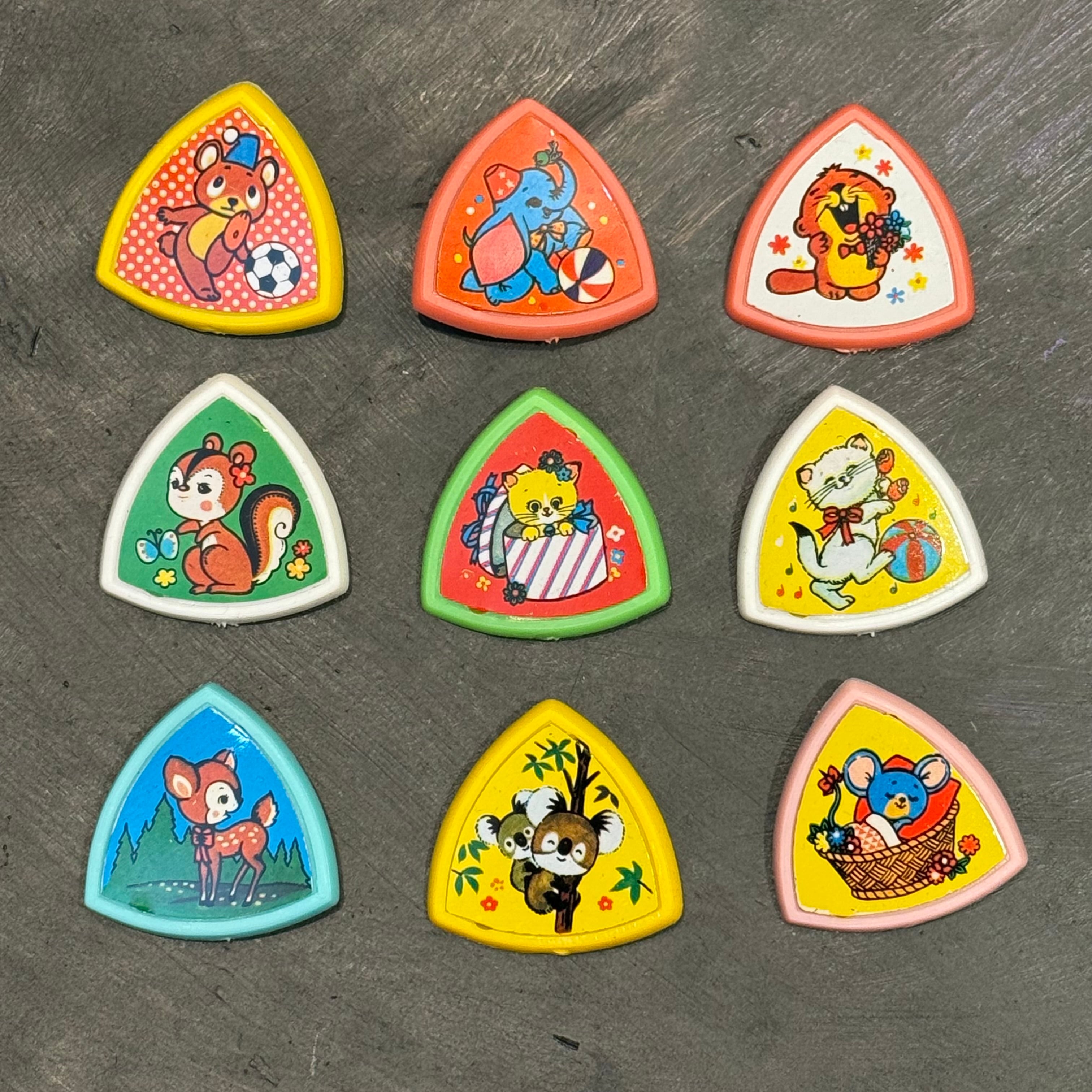 三角の形と昭和レトロな絵柄が可愛い、バッジです。 サイズ 直径 約3センチ